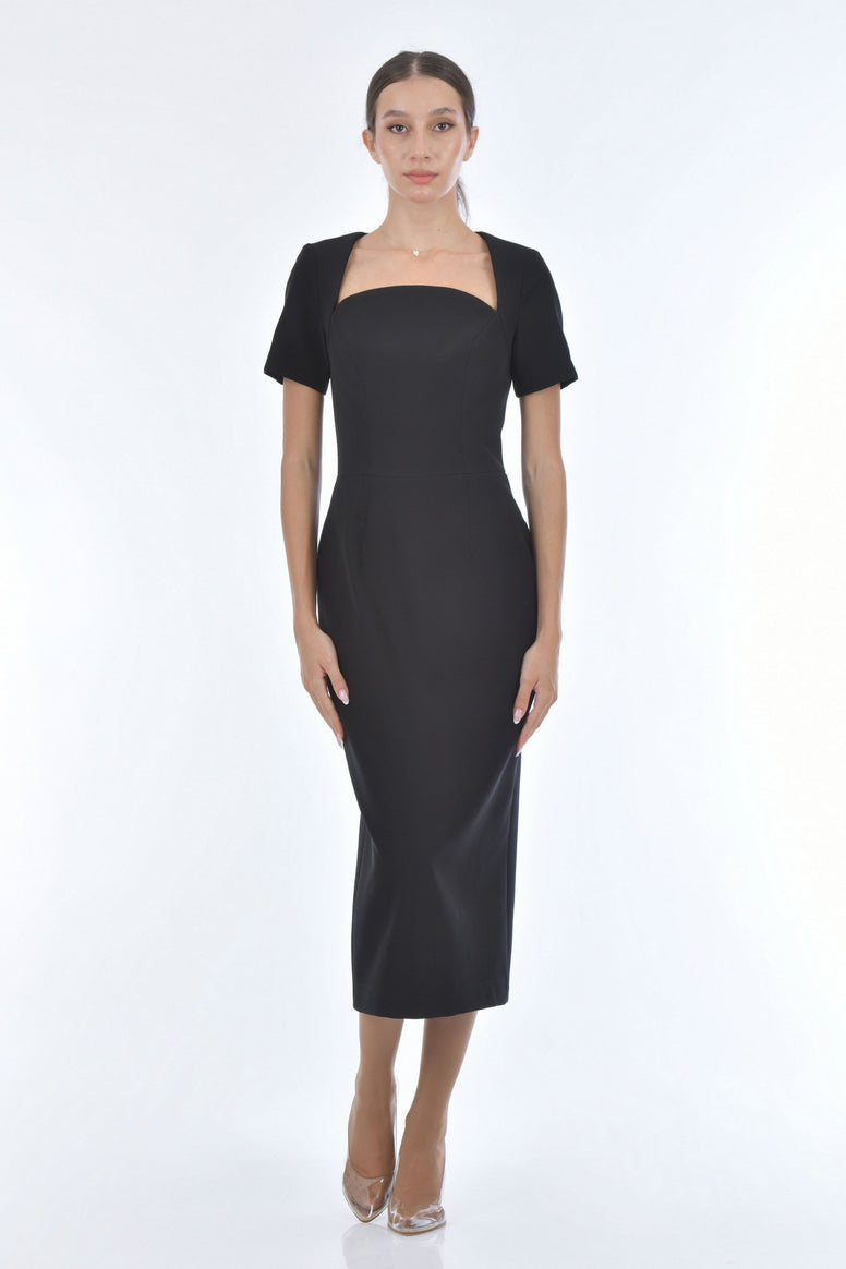 This timeless midi dress is crafted from smooth crepe, offering a flattering silhouette and elegant lines. Versatile and sophisticated, it is perfect for both professional settings and chic evening occasions
