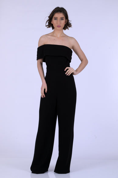 Elegant single-shoulder jumpsuit crafted from crepe, featuring a sleek silhouette and wide legs for a refined and modern look. Perfect for special occasions and evening elegance.