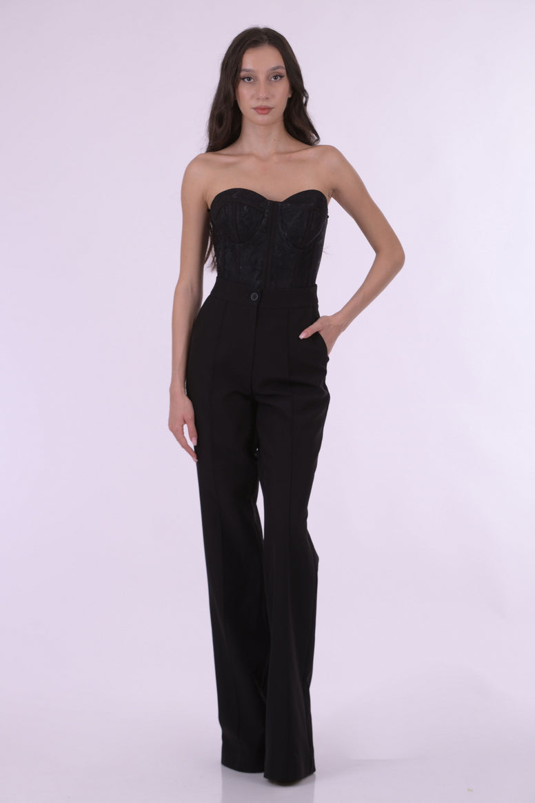flared stretch crepe pants designed to elongate the silhouette. Sleek and versatile for any occasion.