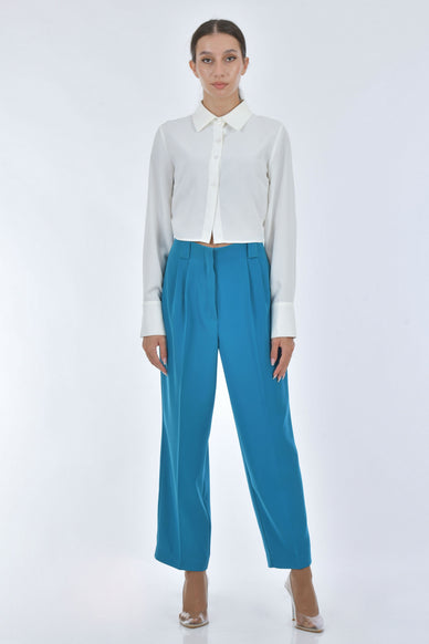 These stylish carrot-fit pants are crafted from smooth, structured fabric, offering a tailored waist and a tapered leg for a flattering, contemporary silhouette. Perfect for professional settings or chic casual looks.