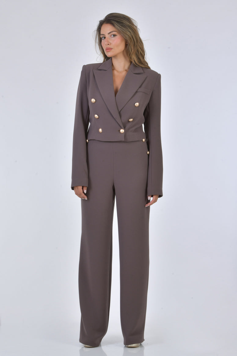 Crafted from smooth crepe, these straight-cut pants feature elegant side button detailing for a modern, refined touch. Versatile and stylish, they are perfect for both professional settings and chic casual looks.