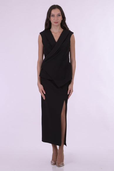 Stretch crepe top featuring a criss-cross front and plunging neckline. A modern and flattering style ideal for both day and night wear.